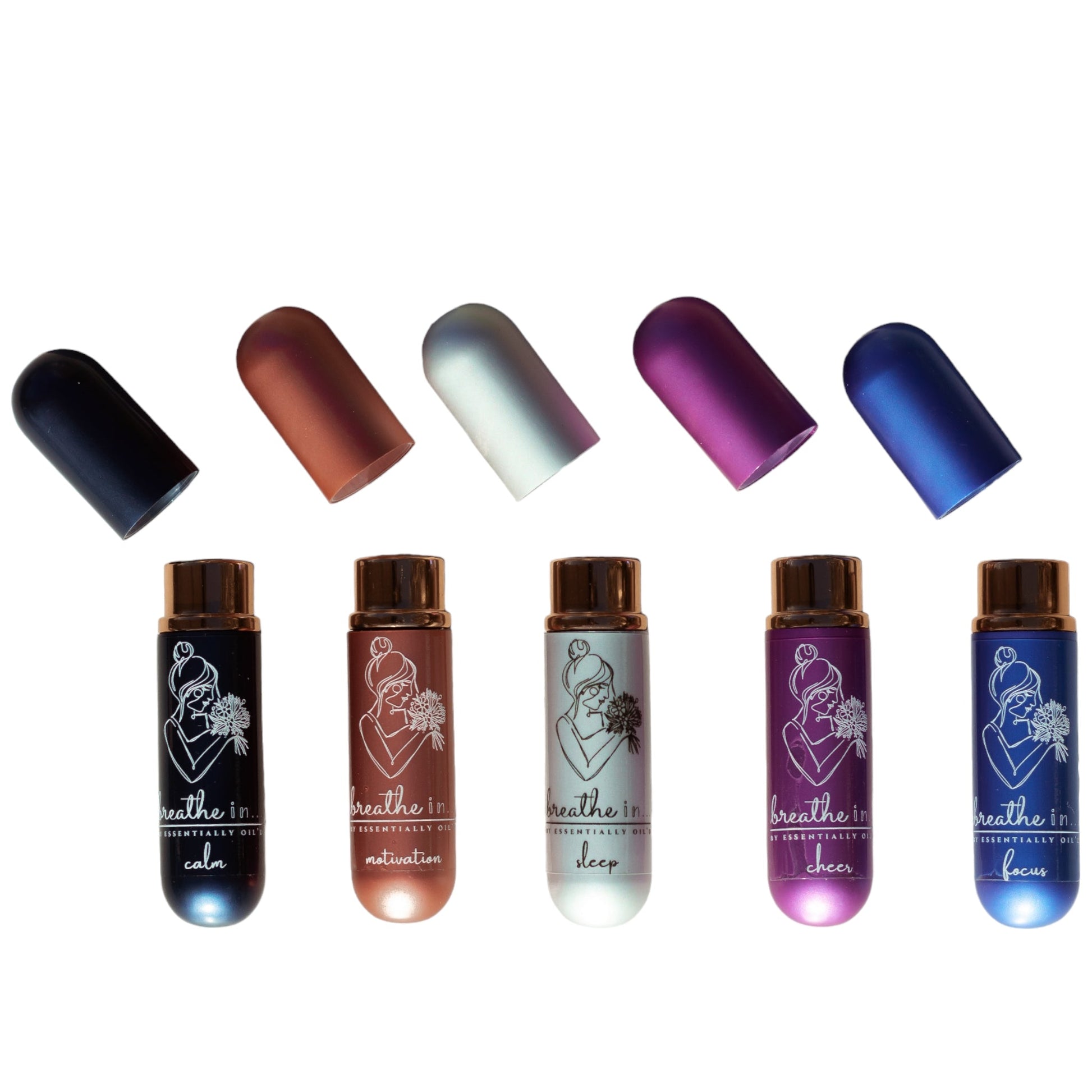 This beautiful set includes all 5 of our Breathe In... aromatherapy inhalers.