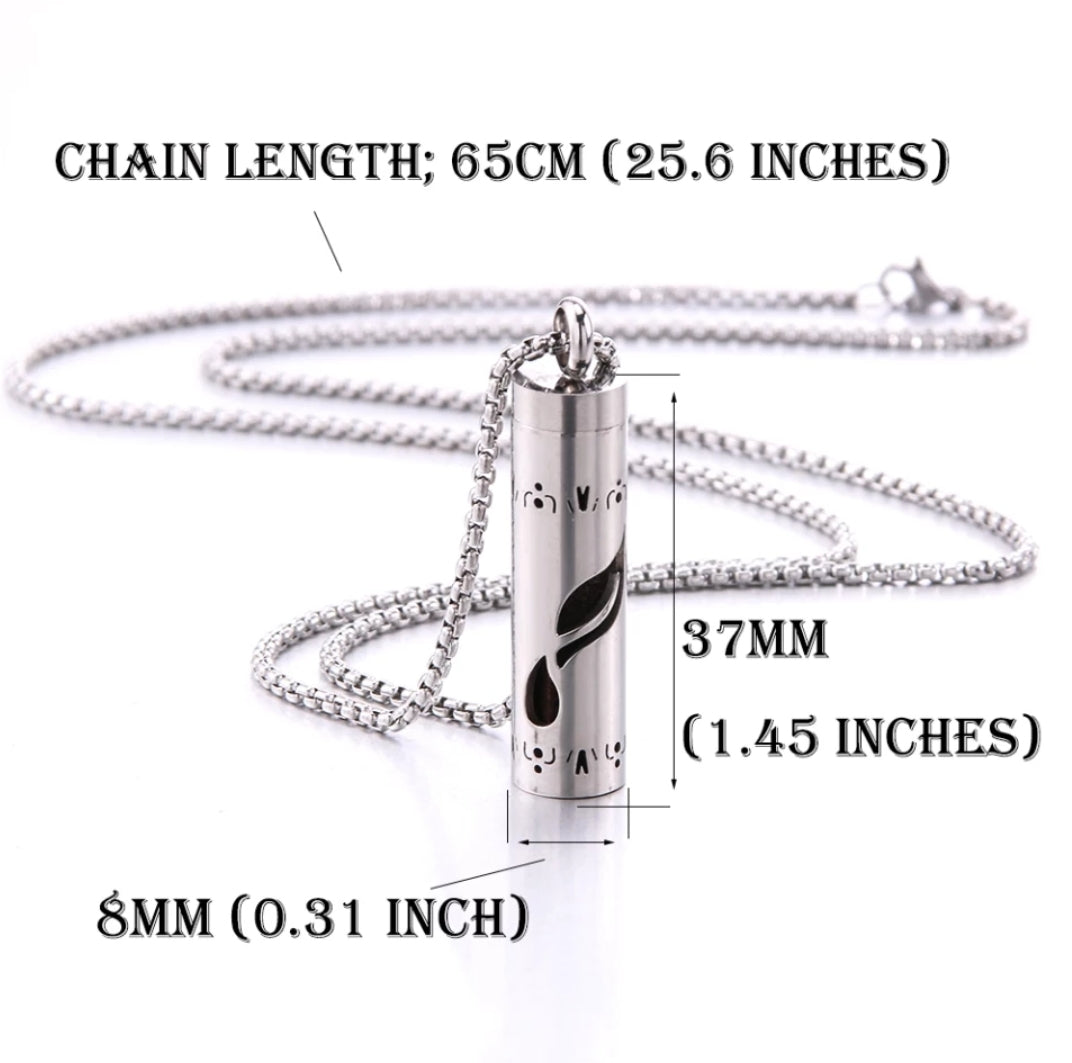 To use the necklace, simply unscrew the top of the locket and remove the absorbent pad.
