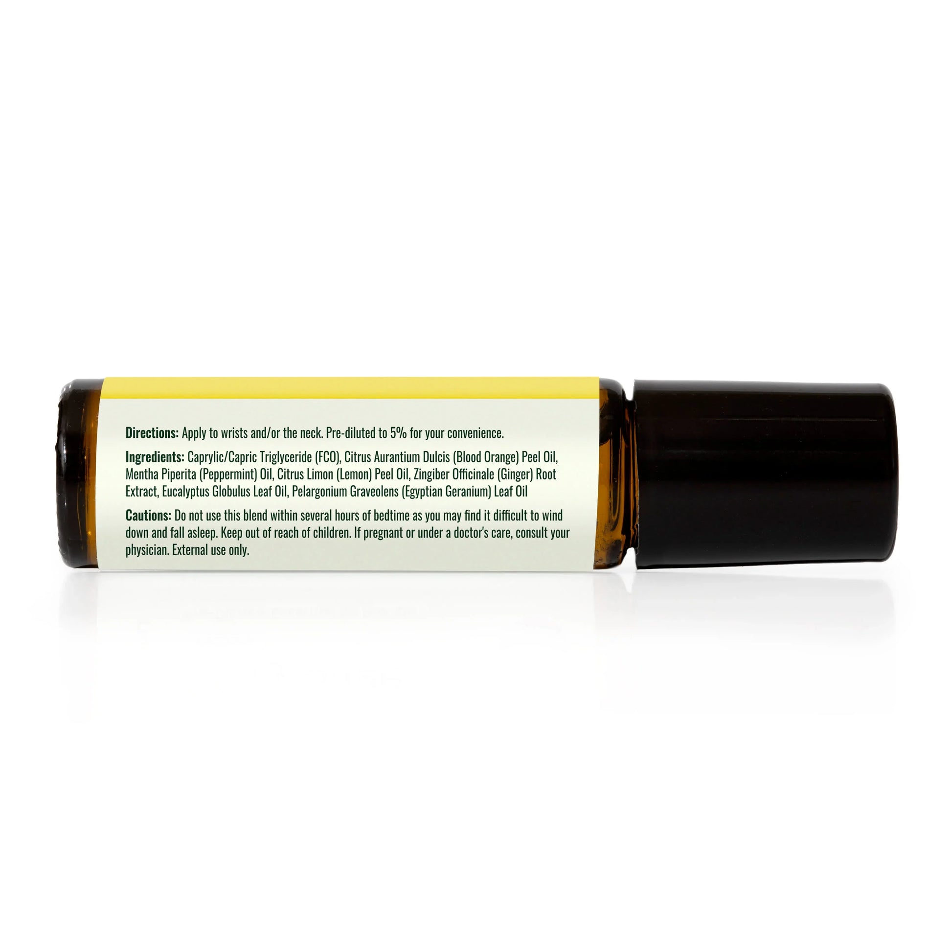 Caprylic/Capric Triglyceride (FCO), Citrus Aurantium Dulcis (Blood Orange) Peel Oil, Mentha Piperita (Peppermint) Oil, Citrus Limon (Lemon) Peel Oil, Zingiber Officinale (Ginger) Root Extract, Eucalyptus Globulus Leaf Oil, Pelargonium Graveolens (Egyptian Geranium) Leaf Oil
