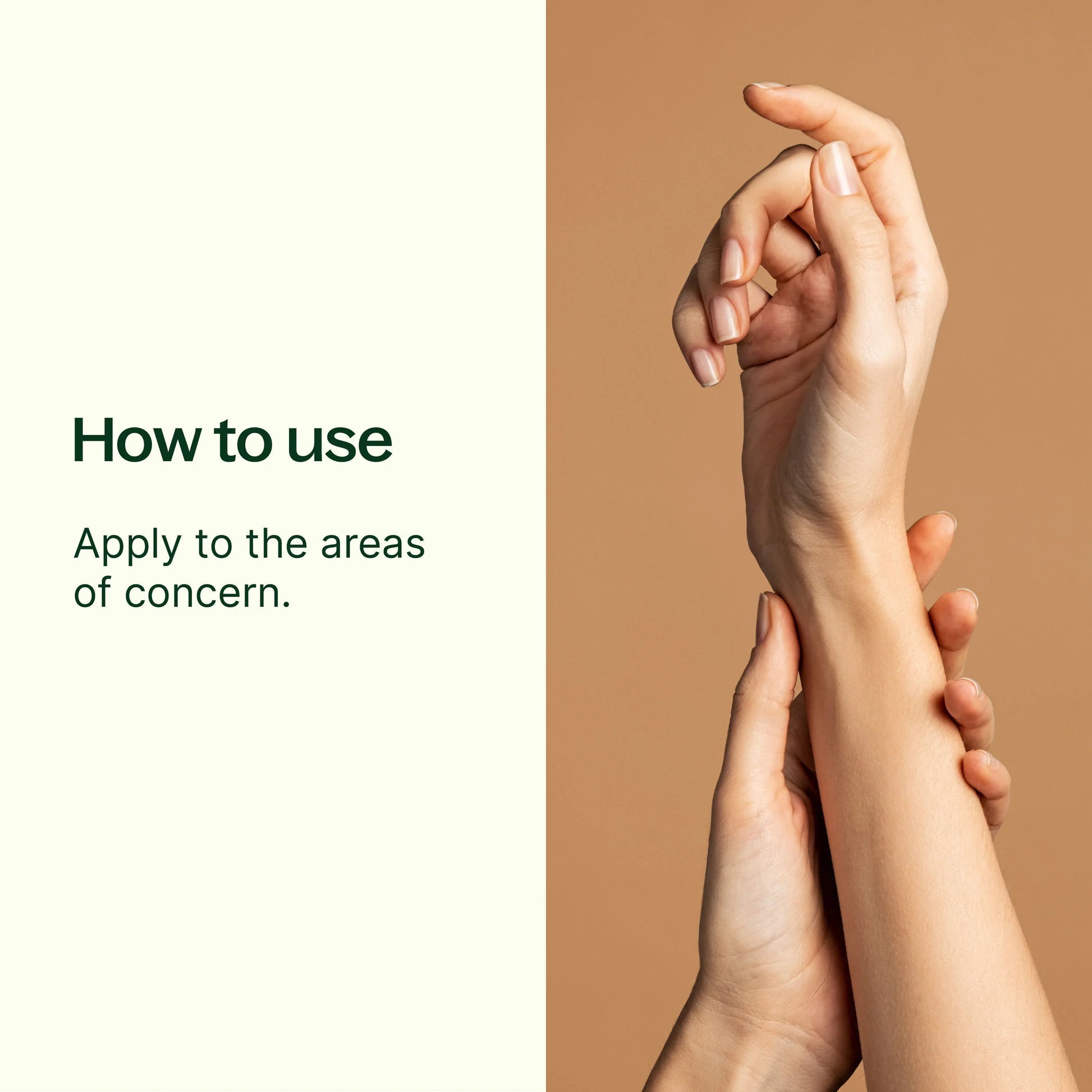 Apply to the areas of concern. Pre-diluted in at 5% in Fractionated Coconut Oil for your convenience.
