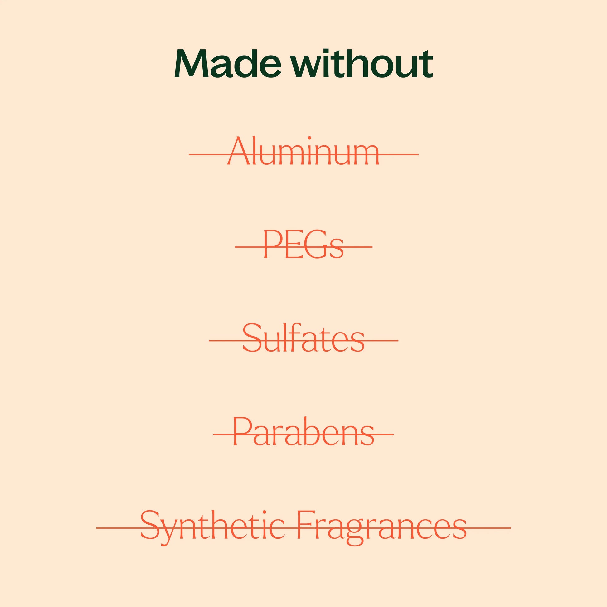 Cocos Nucifera (Coconut) Oil, Caprylic/Capric Triglyceride (FCO), Maranta Arundinacea (Arrowroot) Powder, Ozokerite, Magnesium Hydroxide, Tapioca Starch, Sodium Bicarbonate, Butyrospermum Parkii (Shea) Butter, Oryza Sativa (Rice) Bran Wax, Citrus Paradisi (Pink Grapefruit) Peel Oil, Elettaria Cardamomum (Cardamom) Seed Oil, Lactobacillus Ferment, Hyaluronic Acid, Helianthus Annuus (Sunflower) Seed Oil, Ascophyllum Nodosum Extract, Spirulina Platensis Extract