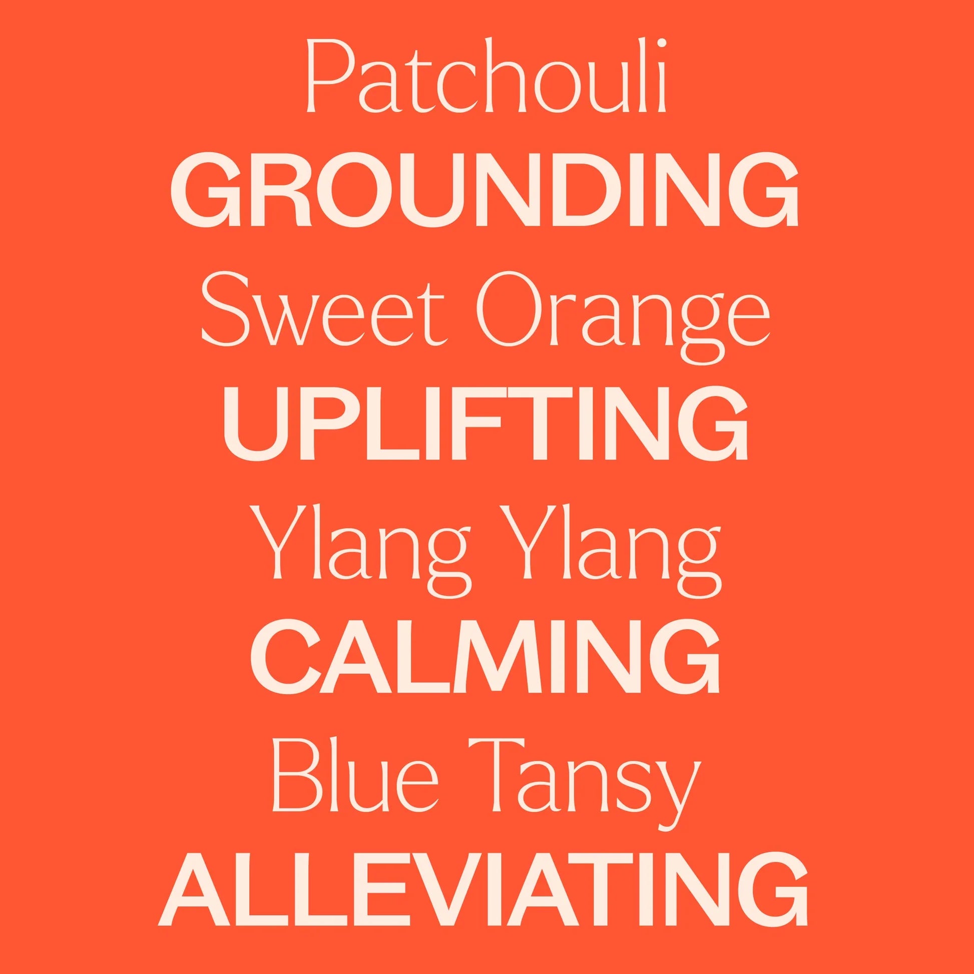 Citrus Reticulata (Tangerine) Peel Oil, Cananga Odorata (Ylang Ylang) Flower Oil, Pogostemon Cablin (Patchouli) Leaf Oil, Citrus Aurantium Dulcis (Sweet Orange) Peel Oil, Tanacetum Annuum (Blue Tansy) Flower/Leaf/Stem Oil
