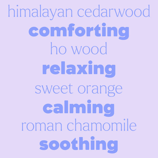 Water, Polysorbate 20, Triethyl Citrate, Cedarwood Oil, Ho Wood Oil, Orange Oil, Chamomile Oil, Vetiver Oil, Sodium Benzoate, Sodium Citrate, Potassium Sorbate, Citric Acid